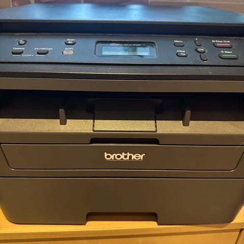 Brother DCP-1512 multifunktionsskrivare i svart färg. Utrustad med funktioner för utskrift, skanning och kopiering. Kompatibel med USB-anslutning och avsedd för kontors- eller hemmabruk.