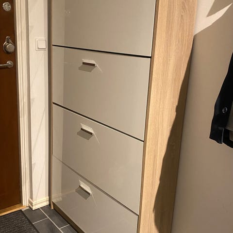 Skoskåp med 3 förvaringsfack och en mindre förvaringslåda för nycklar etc. högst uppe.