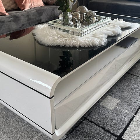 Sophie soffbord i massiv oljad ek med glasskiva under