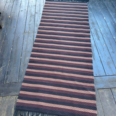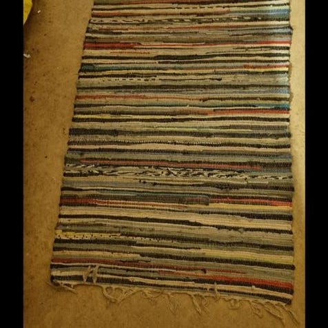 matta i grön och vit färg med mönster och fransar. Mattan har en kombination av olika nyanser och texturer, vilket ger ett varierat utseende. Passar för användning som golvmatta i olika rum. Storlek 137cmx200cm