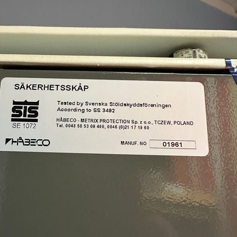 Diplomat SG 149D säkerhetsskåp med nyckellås. Skåpet är tillverkat i stål och är avsett för säker förvaring av värdeföremål och dokument. Modellen har flera hyllplan och är lämplig för både hemmabruk och kontor. H 150 B 54 D 40 2 nycklar en av dem kärvar