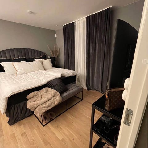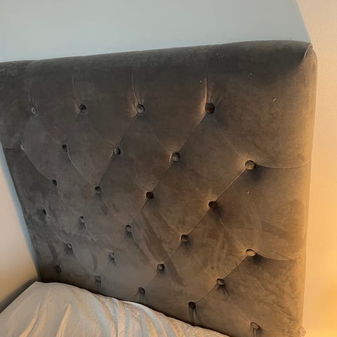 Vadderade tjock sänggavel i mörkgrå sammettyg