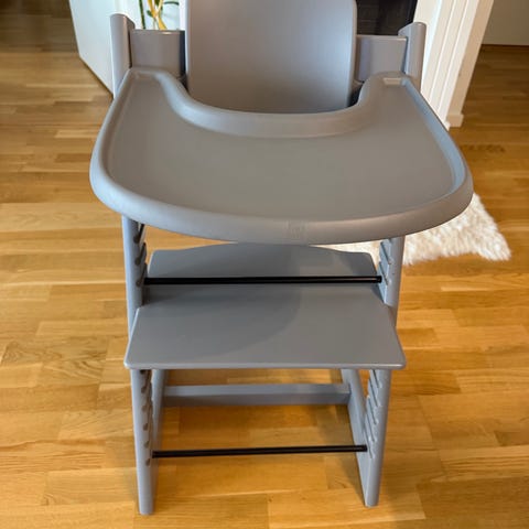 Säljer en Stokke tripp trapp stol med bygel och svart läderrem. Äldre modell. Fint skick. Målad vit, minimalt med färgskav.
