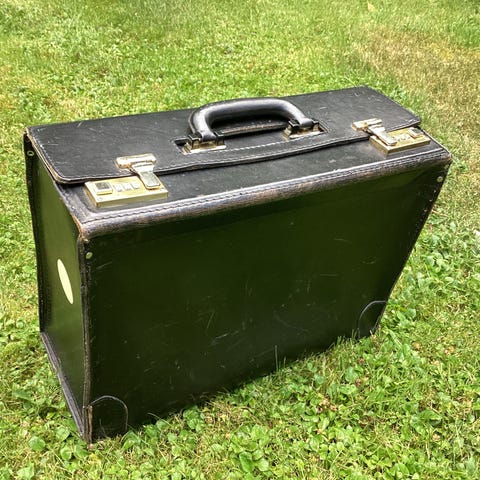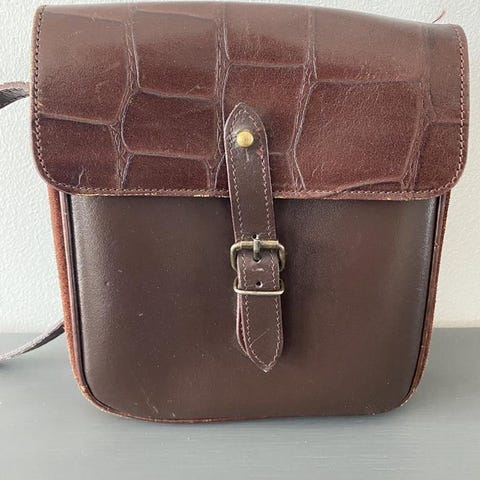 Två fack på framsidan med tryckknapp, mått: Öppning 12 cm, djup 27 cm, vidden uppskattas till 3 cm. Ett större fack inuti väskan, mått: Öppning 25 cm, djup 43, vidden uppskattas till 7 cm. Det stora facket stängs med dragkedja. Inuti det större facket finns ett mindre fack med dragkedja, mått: Öppning 22 cm, djup 12 cm, vidden uppskattas till 3 cm. Det finns också ett fack med kardborrlåsning för exempelvis en IPad. Vidare finns det två mindre fack för exempelvis en kortlek samt mobiltelefon. Det finns också tre pennhållare i läder.