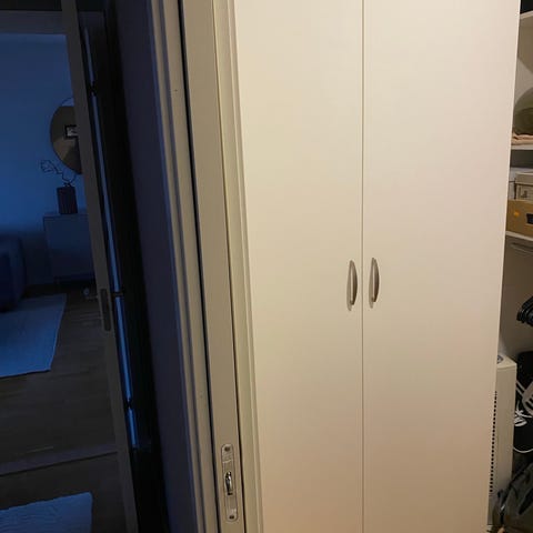 2 st vita, släta garderobsdörrar inklusive handtag och beslag från Länghems kök säljes enligt nedan följande mått: