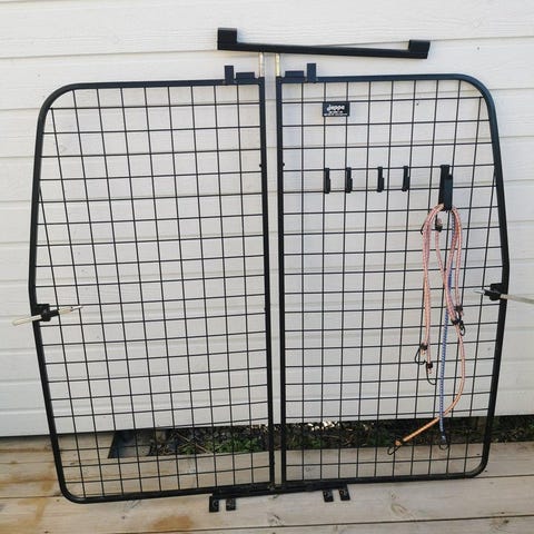 Jeppe Hundgrind för bil i metall med svart färg. Täcker hela bakluckan, mellanvägg i plywood skickas med. Passar Audi a4, a4 Allroad.
