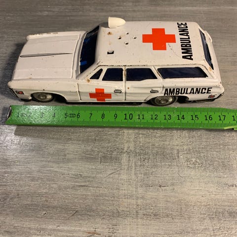 Matchbox leksaksbilar samt vägmärken från tidigt 1960-tal.