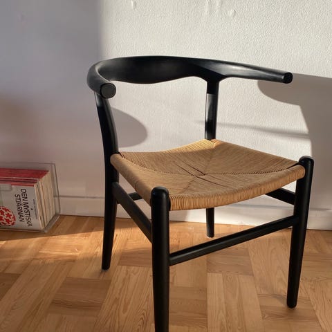 Hammock stol från David Design med sits och rygg i svart läder. Mått: bredd 44,5 cm, djup 53,5 cm, höjd 90 cm och sitthöjd 45 cm. Nypris cirka 5000 kr. Endast för avhämtning i Stockholm.