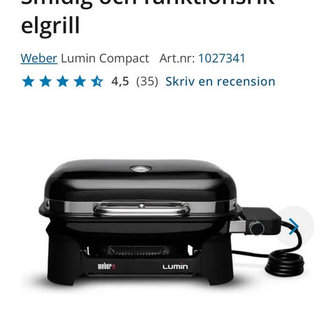 Stativ med sidobord till Weber Lumin elgrill. Ny och oanvänd.