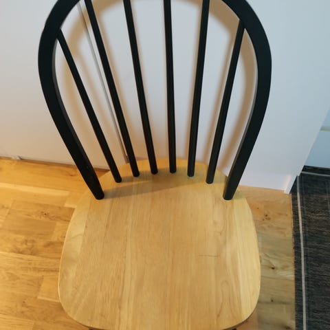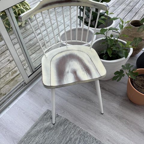 Fyra vitmålade pinnstolar med rund rygg