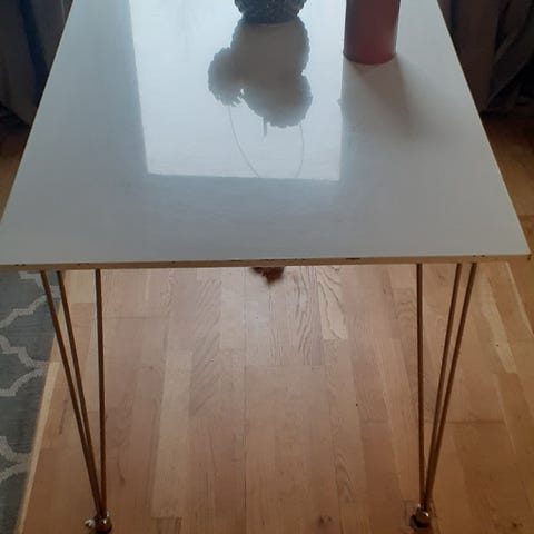 Köksbord med inbyggd låda. Stabilt och bra men behov av ommålning. Finns skav på bordsben och skiva. Säljes pga byte till ett större köksbord.