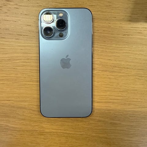 Apple iPhone 13 Pro mobiltelefon med 128 GB lagringskapacitet. Telefonen har en skärm med notch och tre kameror på baksidan. Enheten är lämplig för användning som smartphone med funktioner för samtal, appar och multimedia.
