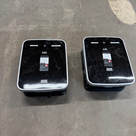 Äldre men fullt fungerande Clever KEBA KeContact P30 laddbox med fast Typ 2-kontakt och kabel. Medföljer manualer för installation och användning.
