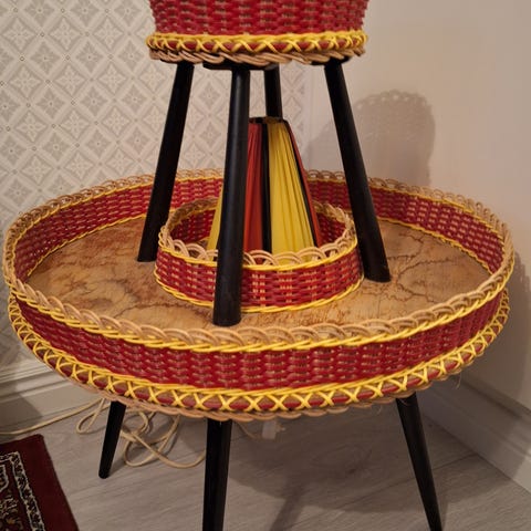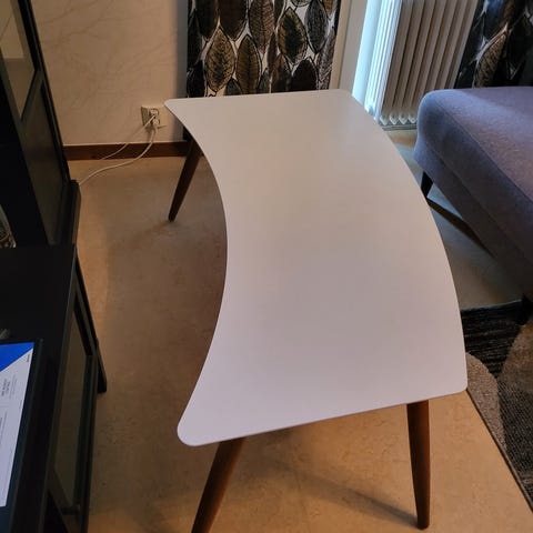 Har stått som litet bord mellan två fåtöljer hos ägaren.