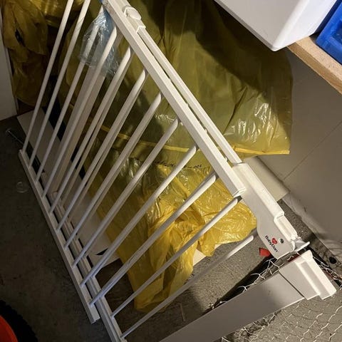 BabyDan Barnsäkerhetsgrind i vit färg. Används för att skapa en säker miljö för barn genom att begränsa tillgång till vissa områden i hemmet.