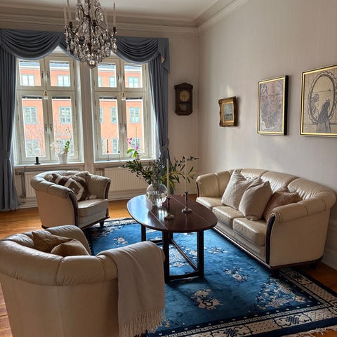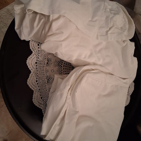 Jag har inte soffan kvar, därav bilden på den vita klädseln. Tvättad och fräsch.
