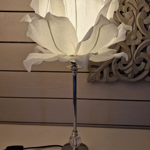 Handgjord dekorativ blomma på golvlampa från IKEA
