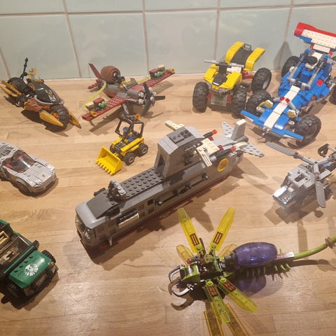 Lego Creator 3-i-1-set (papegoja, pegasus och drake) med instruktionshäften.
