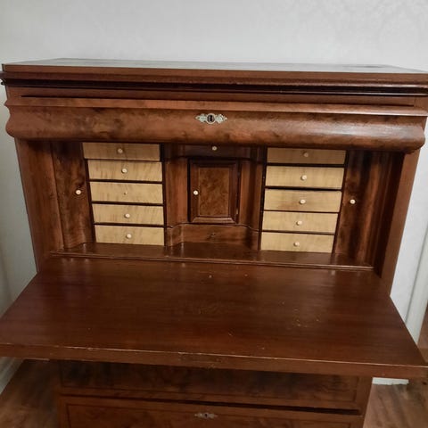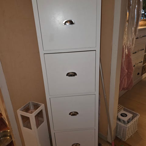 En fin nätt byrå i shabby Chic stil, den är Vit, är ljuset från lampan som påverkar bilden.