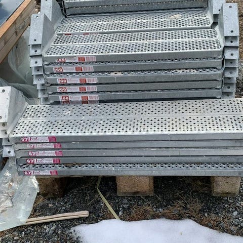 Stege med 4 steg. Ca 90 cm högt upp är sista steget.