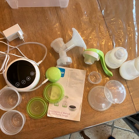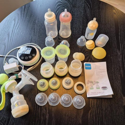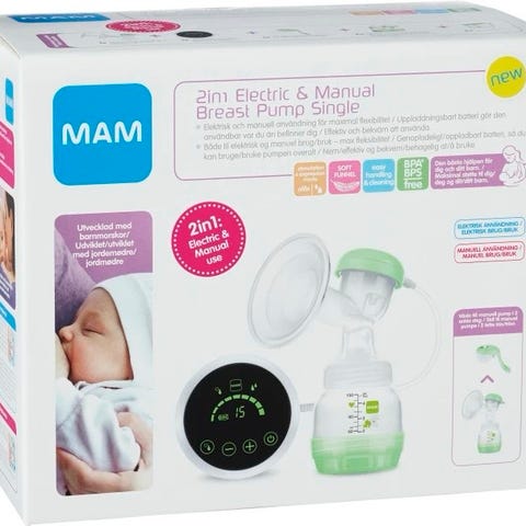 Bröstpump från MAM med både manuell och elektrisk funktion. Fungerar utan problem!