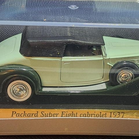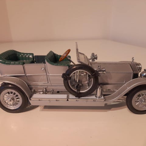 Utsökt stor och pampig model av mesta Rollsen. Plysch, fotpallar, ädelträ, res.hjul och barskåp. I original box. Speglar mm i separat ask ingår.