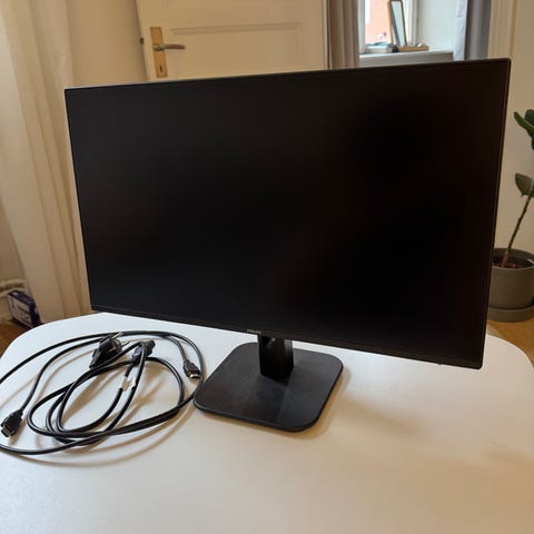 Acer 24-tums datorskärm med HDMI- och VGA-anslutningar. Skärmen har en rund silverfärgad fot och en svart ram. Passar för allmänt datoranvändande.
