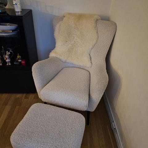 Säljer en fåtölj Elin med fotpall köpt på Mio