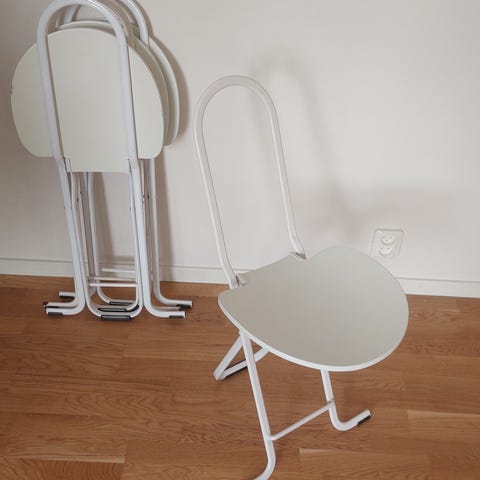 Dom har en skrapskada på främre armstöden. Se bilder. Behöver torkas rena. I övrigt är dom i bra skick.