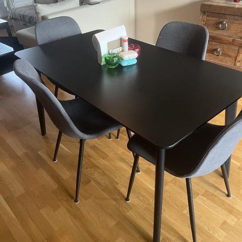 Vitt lackerat matbord med plats för 6 st stolar, 180 x 90 cm.