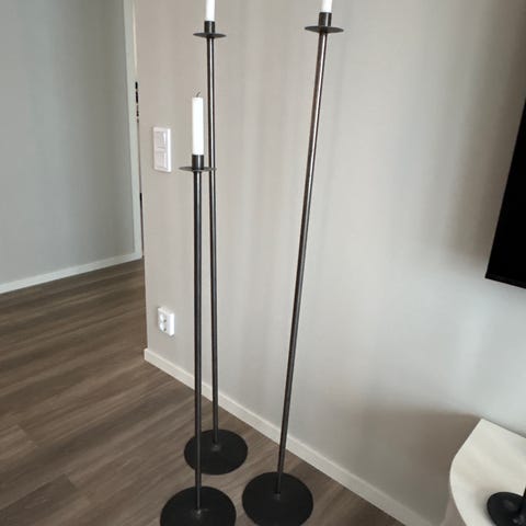 Vacker golv ljusstake i svartbehandlad smides gjutjärn.
