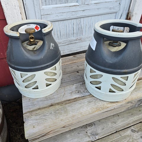 Den grå är såld den blåa har en tredjedel kvar med gas.