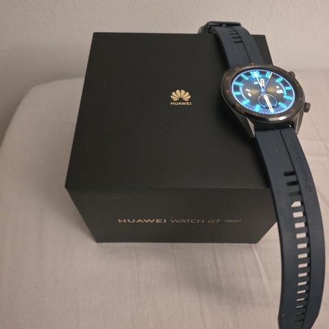 Säljer en Huawei Watch GT 2 Pro i färgen Nebula Gray. Klockan kommer med flera armband och en laddare. Perfekt för den som söker en stilren och funktionell smartklocka.