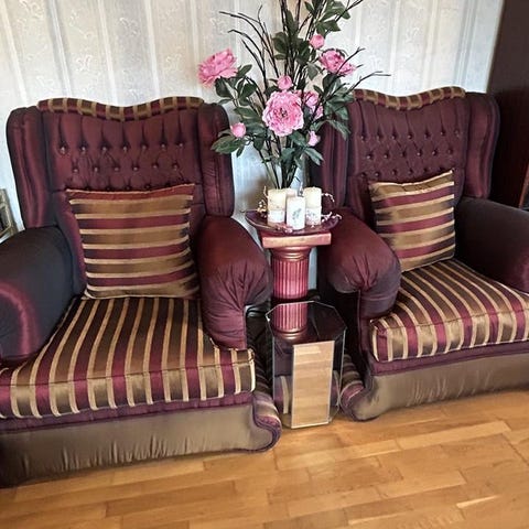 Fåtölj: Bredd 80 cm, djup 95 cm sitthöjd 50 cm
