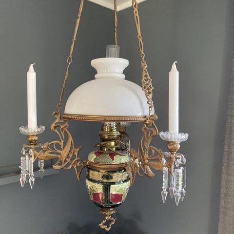 Denna typ av lampa var vanlig i slutet av 1800-talet till tidigt 1900-tal, och enligt utförande, material och konstruktion bedöms den vara från cirka 1890–1920 (exakt årtal ej märkt).