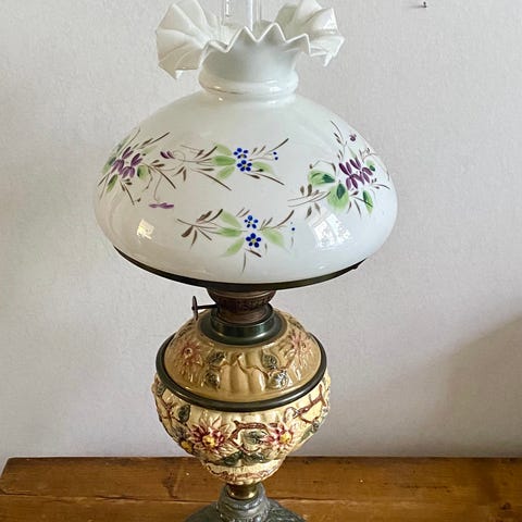 Antik fotogenlampa – ca 47 cm – vacker tidlös inredningsdetalj