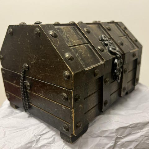Rund hattlåda i trä med lock. Locket kan hoppa ur ramen men går att trycka fast. Bra som förvaring