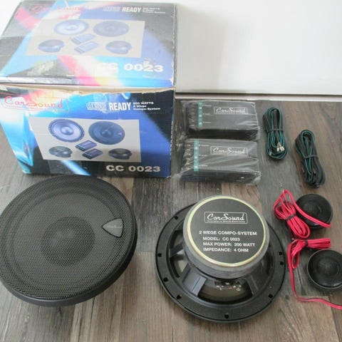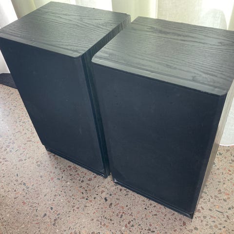 Ett par högtalare av hornkonstruktion, byggsats från 80-talet på 2x100 watt med fantastiskt ljud, härlig bas. Elementen är nyare och sparsamt använda. Hornkabinettet består av spånskiva. Fullt fungerande, behöver lite ny färg annars helt i sin ordning.