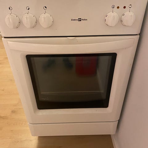 En mindre spis av märket Elektro Helios för ett litet kök eller sommarstuga. Fungerar helt ok. Kopplad för 400 V men går att koppla om för 230 V. En långpanna och två bakplåtar finns.