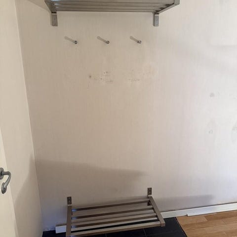Säljer en stilren och praktisk hatthylla tillsammans med matchande skoställ/ sittbänk. Perfekt för hallen och passar både modern och lantlig inredning.