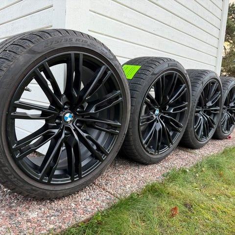 Original M2 aluminium fälgar 18” med nästan nya dubbfria däck Michelin. Köpte G20 modellen så tyvärr passar dem inte till vår nya BMW. Dem är i princip nya, balanserade, med TPMS ventiler
