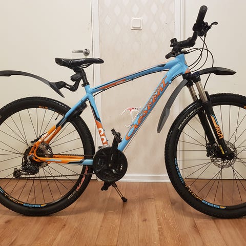 Bergamont Roxtar 4.0 MTB med 27.5-tums hjul. Shimano 24 växlar och hydrauliska skivbromsar. Framfjädring, pakethållare och skärmar. Bra begagnat skick, fullt fungerande.