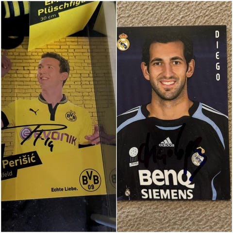 Båda är signerade personligen av Nadal efter en tennis match under Stockholm Open.