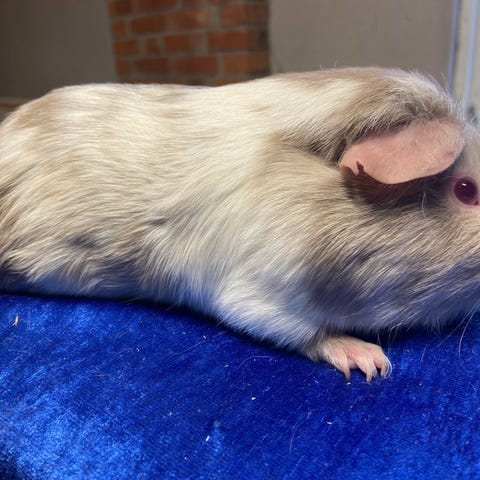 En vacker Golden California hane finns till salu. Detta lilla marsvin kommer att få en svart nos, svarta öron och tassar efterhand som han blir äldre. Han är nu 5 veckor gammal och redo för ett nytt hem där andra marsvin finns då de inte kan bo själva. Bilder på mamma och pappa finns.