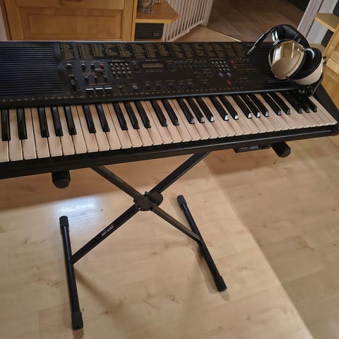 Keyboardet har 255 ljud och rytmer, 8 pads samt 24 demolåtar. I paketet ingår keyboard, stativ och bänk.Allt fungerar som det ska.