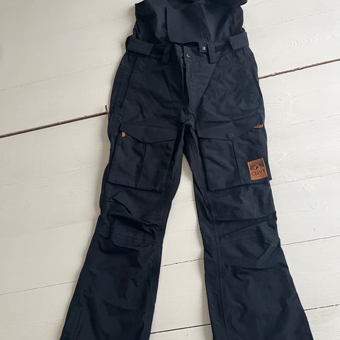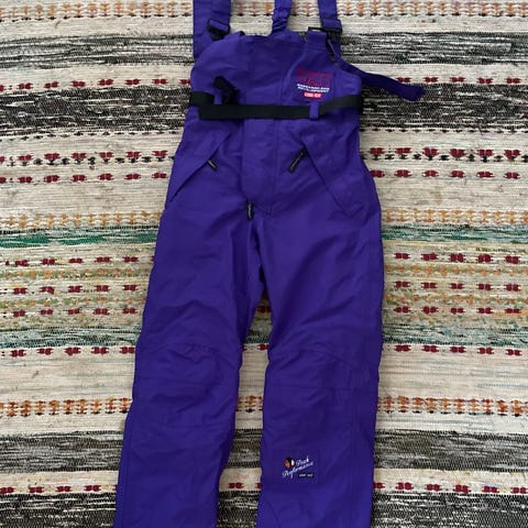 Märken efter skidor nertill och trasig dragkedja på ficka