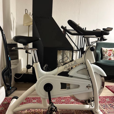 Yosemite träningscykel i svart färg. Utrustad med digital display för tid, hastighet och distans. Designad för inomhusträning med justerbart sadel och kompakt ram. Nypris hos Biltema 1490:-. Knappt använd.
