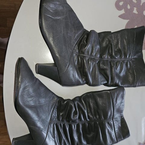 & Other Stories stövlar i storlek 38. Tillverkade i mockamaterial med en ljusbrun färg. Stövlarna har en medelhög klack och passar för vardagligt bruk.