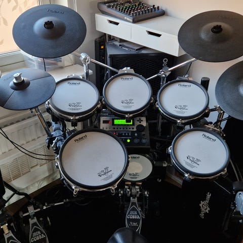 2x 6,3 mm stereo-jack-triggeringångar (redan upptagna av andra crash- och fjärde pukpad)