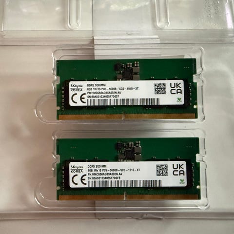 Säljer Samsung DDR5 RAM-minne 16 GB (2×8 GB) i formfaktor SO-DIMM för laptop/mini-PC.